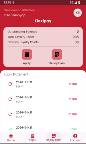 This is just one of the medium for taking and paying loan.Little pesa is micro finance loan company. This application will provide features like take loan, repay loan, view your basic loan statement.