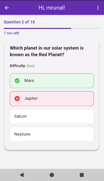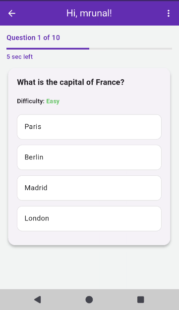 - Timed quiz sessions for fast and engaging gameplay